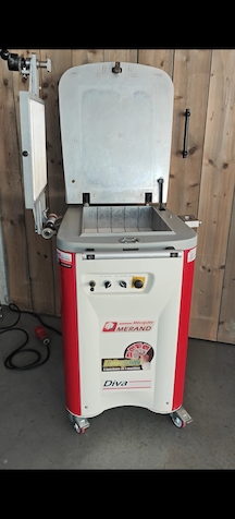 Mooie goedwerkende deegverdeler met 10/20 optie voor brood en aanpasbare druk via hendel 10 delig rooster voor stokbrood 3 extra roosters voor broodjes ook boterpressen is mogelijk met deze machine 4500 euro excl btw 21%